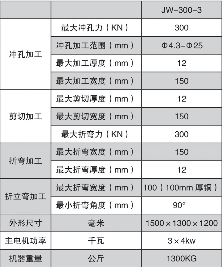 本系列母垃加工機(jī)有沖、剪、折三個(gè)加工單元,主界功能為加工不同規(guī)格的銅、鋁母線,